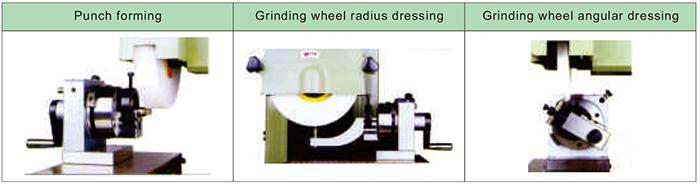 ● 配件成型臂,角度修整器及钻石工具,只要一台,就很容易的修整砂轮的凹凸R和角度,因此就不需要有其他的修整工具。