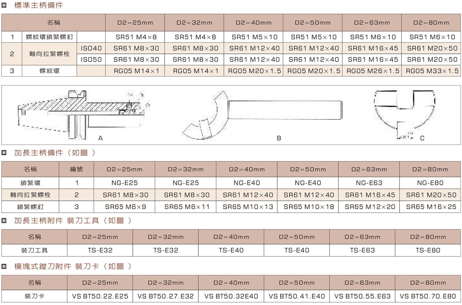 模块式镗刀及刀柄备件和附件